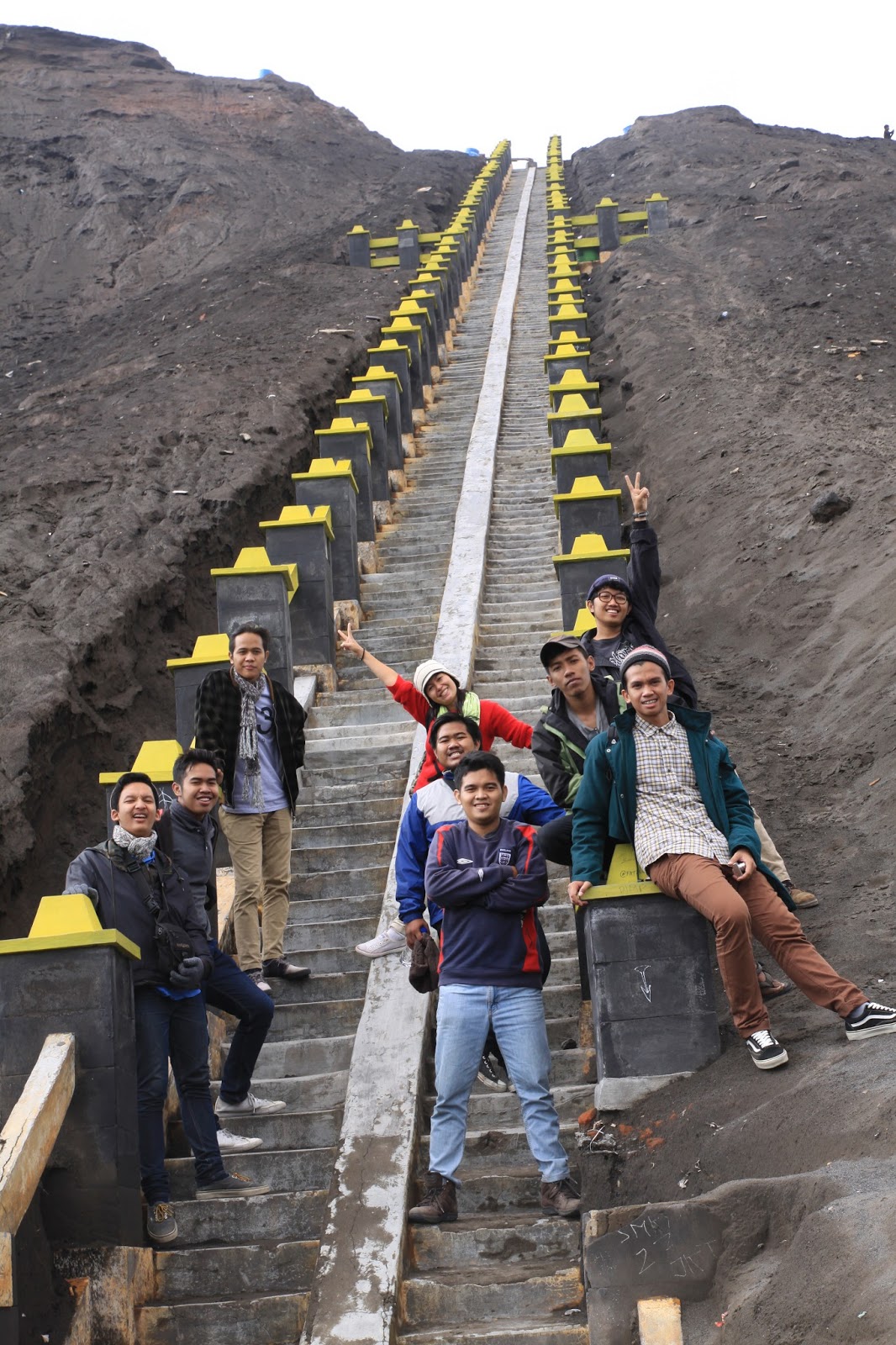 menaiki tangga bromo dan melihat ke bawah betapa banyak dan luas saya telah