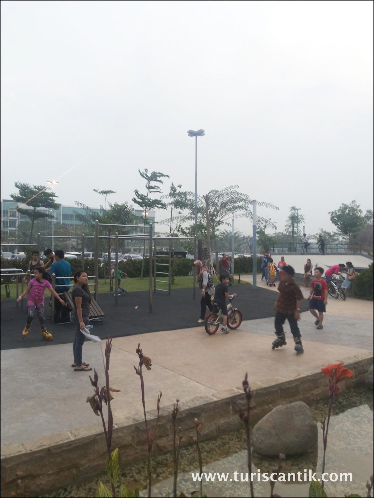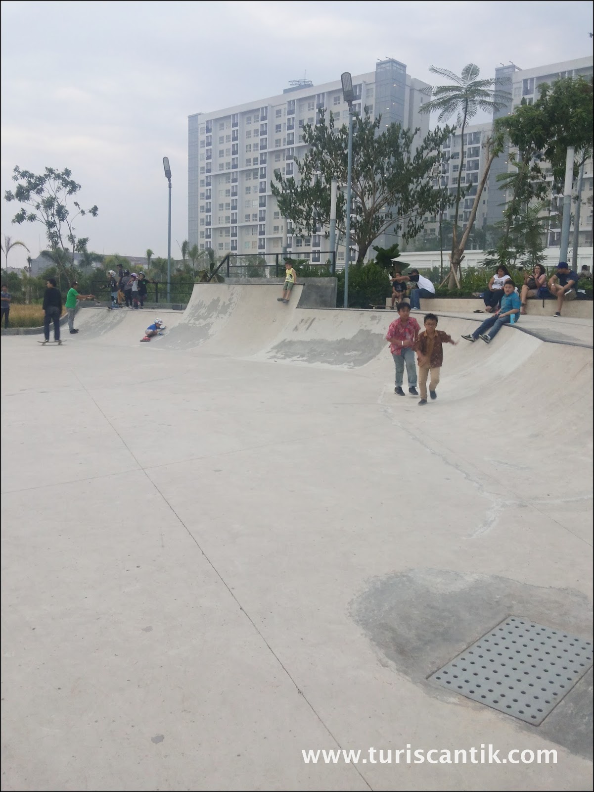 websitenya taman ini lumayan luas 1.2 hektar yang dilengkapi dengan skate park,
